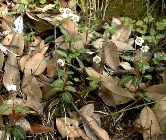これまで、花の終わったところしか見ていなかったのですが、今年(平成11年)は、山中のスダジイ林下と海岸のクロマツ林下で開花期にぶつかり心ゆくまで撮影できました。
