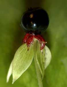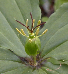 ・外花被片:萼(萼片)と花冠(花弁)がよく似ていて区別しにくいときに、ひとまとめにして花被といいます。その内、萼片に相当するものを外花被片、花弁に相当するものを内花被片といいます。ツクバネソウには、内花被片はありません。