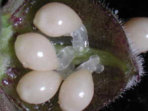 | スミレは春の花の代表選手ですが、中でも、アオイスミレは最も早く咲く部類です。その葉の形が、徳川家の家紋に使われている「葵」(フタバアオイ:FILE50で解説)の葉に似ているところから付いた名だと言われています。 スミレは種類が多いのですが、アオイスミレにはどんな特徴があるのでしょうか。 1 距(きょ)は太くてずんぐりし、でこぼこしている。(図2) 2 雌しべの花柱の先がカギ型に曲がる。(図3) 3 葉の形は、円心形で先が円い。托葉(たくよう)は縁に毛がある。(図4) 4 若葉は、両側が巻いている。(図5) 5 果実は球形で、毛深い。(図6) 6 種子は長さ2mm位で、その先に1mm位の半透明でぜりー状のエライオソームを付けている。(図7) いろいろな特徴がありますが、花の時期なら、雌しべの花柱の先がカギ型に曲がるで、花が終われば果実は球形で、毛深いですぐに識別できます。花も実もなくても、丸くて毛深い葉は大きな特徴です。 本州、四国、九州の広い範囲の、丘陵地などに多いスミレです。 エライオソームとは:アリを誘引する物質(オレイン酸などの脂肪酸、グルタミン酸などのアミノ酸、ショ糖などの糖)を含んだ種子の付属体のことです。 学問的には珠皮に由来し、種子が発生時に胎座(たいざ)に付着していたへそと呼ばれる部分にできます。図7でそのことがよく分かります。 このエライオソームの付いた種子をアリが見つけて巣へ運びます。運ばれた種子は、巣の中でエライオソームの部分だけが食べられ、そのあとの種子は、巣の中のゴミ捨て場に捨てられたり、巣の外へ土と一緒に捨てられたりします。いずれにしても種子は発芽能力を失うことなく、運ばれたことになります。アリにとっても、栄養に富むエライオソームを獲得できるので、双方が利益を得ることになり、アリと植物は双利共生の関係にあるといえます。 このような方法で、種子を散布する植物をアリ散布植物と呼びます。 日本におけるアリ散布植物としては、スミレ属、イチリンソウ属、フクジュソウ属、ミスミソウ属、キケマン属、クサノオウ属、エンレイソウ属、カタクリ属などに200種類くらいはあると考えられています。 スミレの仲間は、種子を弾き飛ばす仕組みを持っているものが多いのですが、アオイスミレは、そのような仕組みを持たなくて、果実が地表面すれすれのところで熟し、親株の根元に種子をこぼすだけです。従って、分布を広げるためには、アリの助けがぜひとも必要なので、図7で見るようにエライオソームも非常に大きいのです。 参考(というよりほとんど引用)(中西弘樹. 種子はひろがる. 平凡社. 自然叢書21.125-147) |