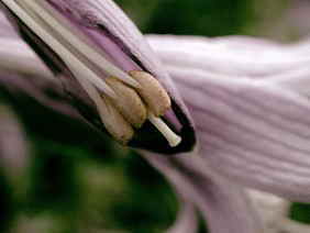 目覚めて、柱頭を見ると、もう花粉がビッシリ付いている。 |